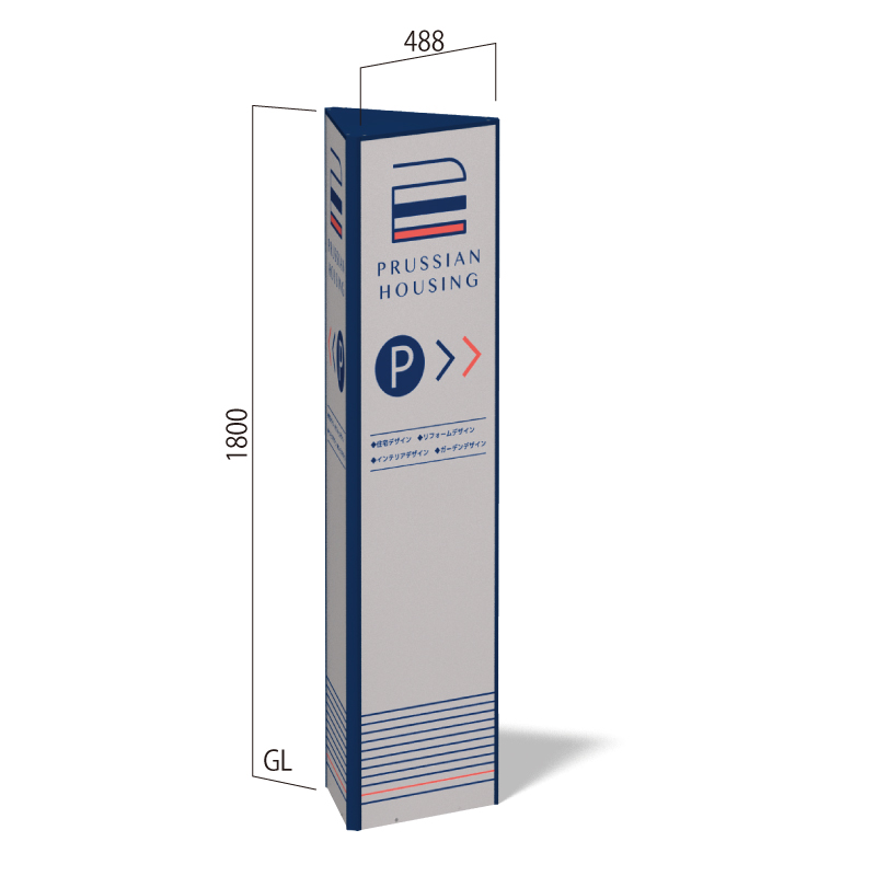 三面体サイン トレス 抜き文字内照 TRX-4518-L W488×H1800 LEDランプ内蔵